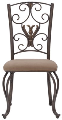 Chairs are made of manufactured hardwood and upholstered in faux leather.